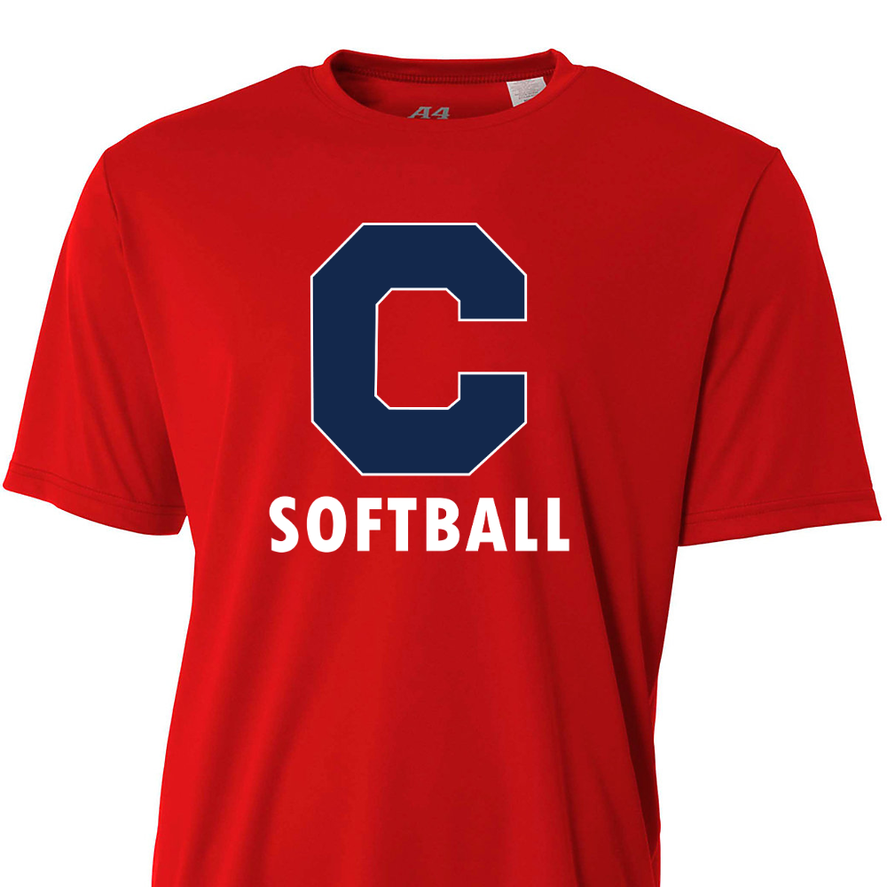 A4 Adult 4.0 Ounce Poly Performance Short Sleeve T-Shirt. 100% Micro Poly Interlock, 4.0 ounce per square yard. Moisture wicking. Odor resistant. Stain release. 44+ UPF for UV sun protection. Player name and number can be added on the back.